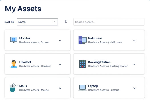The ‘My Assets’ page acts like your personal asset inventory. It gathers and displays all the assets that are connected to your Atlassian user account. You can sort, filter and search with ease.